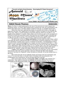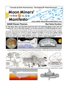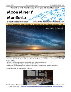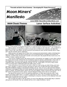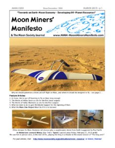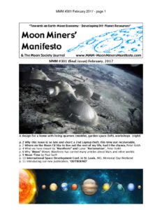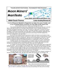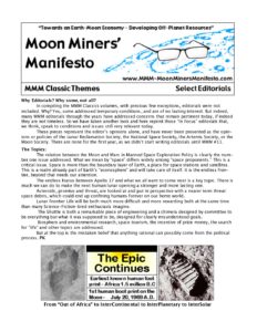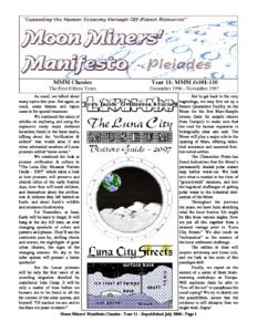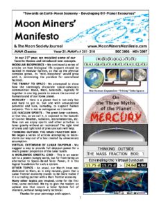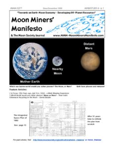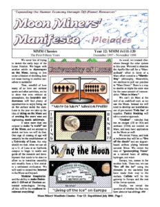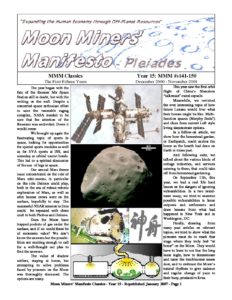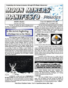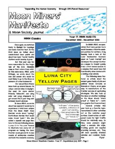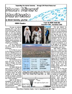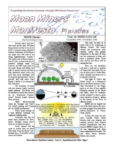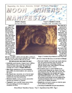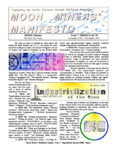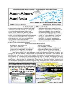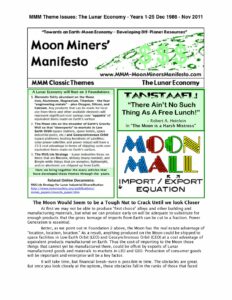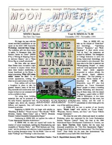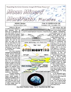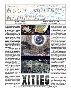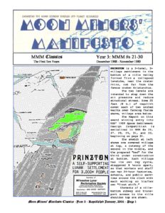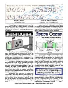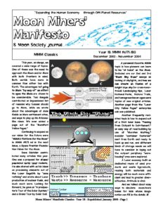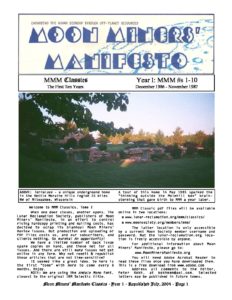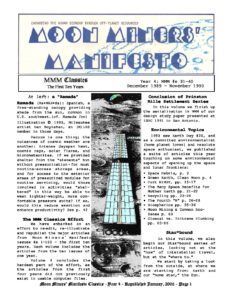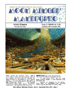 Moon Miners’ Manifesto (MMM) is the official publication of the Moon Society. It has been published semi-continuously since 1986.