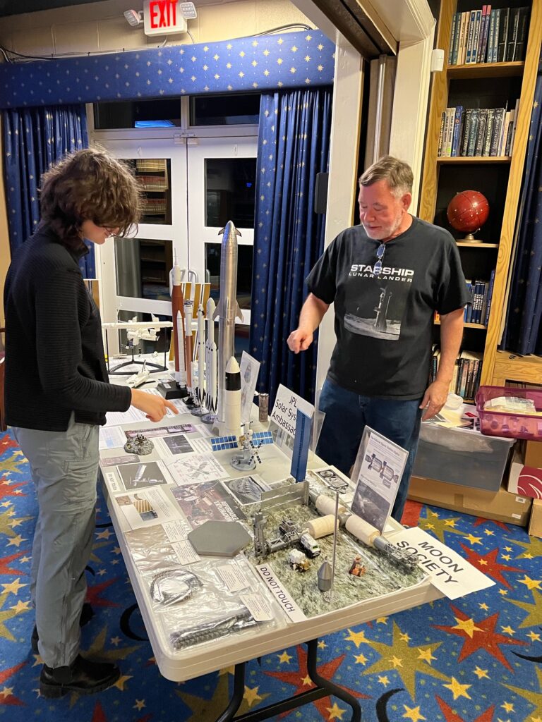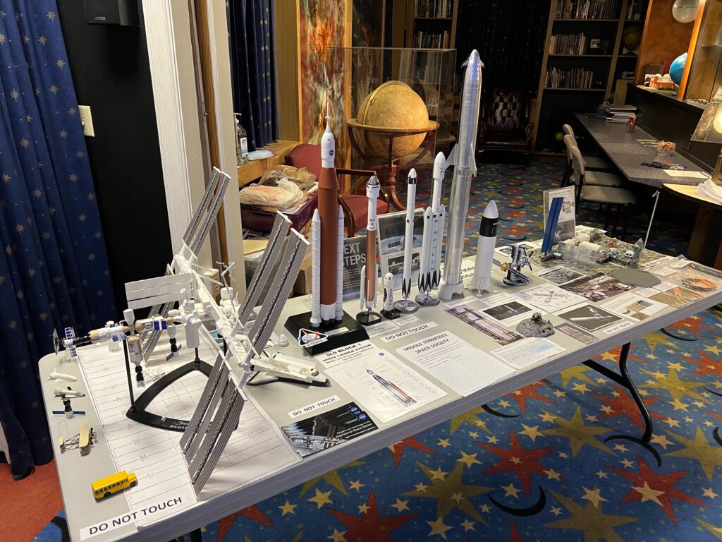 I presented my “Apollo to Artemis and Beyond” exhibit at the Dyer Observatory Public Telescope Night 4/12 8:30-10:30 pm using spacecraft models of the Apollo LM, STS Space Shuttle, International Space Station, Soyuz & Progress and Artemis’s SLS, Orion and SpaceX Human Landing System. I premiered my new Lunar Gateway station with Orion docked too.