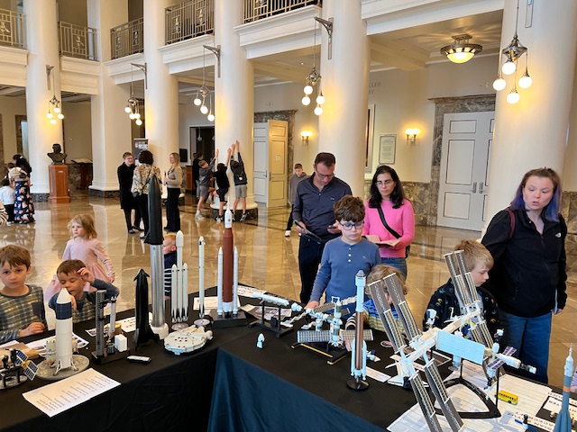 I presented my “Apollo to Artemis and Beyond“ exhibit to their ~500 guests and spoke directly with ~120 children and adults. I used 33 models to tell about America’s space program including Apollo, Space Shuttle, ISS, future commercial space stations, SpaceX Falcons and Starships, Artemis Moon landers, Lunar Gateway station, Blue Origin’s New Shepard & New Glenn and a Mars relief map of Jezero crater and the Perseverance rover’s exploration path.