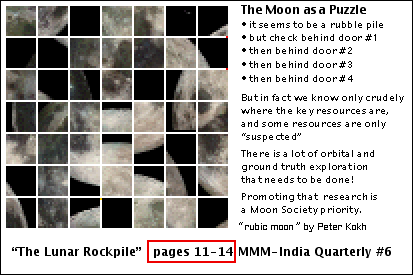 There are other hidden doorways to the Moon of “unsuspected world-potential”, and it has been MMM’s guiding mission to uncover the possibilities one by one. Next time you hear someone say “The Moon? Been there, done that!” you will know that you at least are able now to see behind the rock pile face to the “real Moon inside” — a rock that can become a world, if we only open all the right doors.