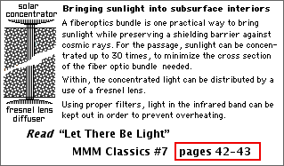 These mapping demonstration tests finished, the bore holes could be filled with fiber optic bundles to let in sunlight pre-concentrated up to thirty times.