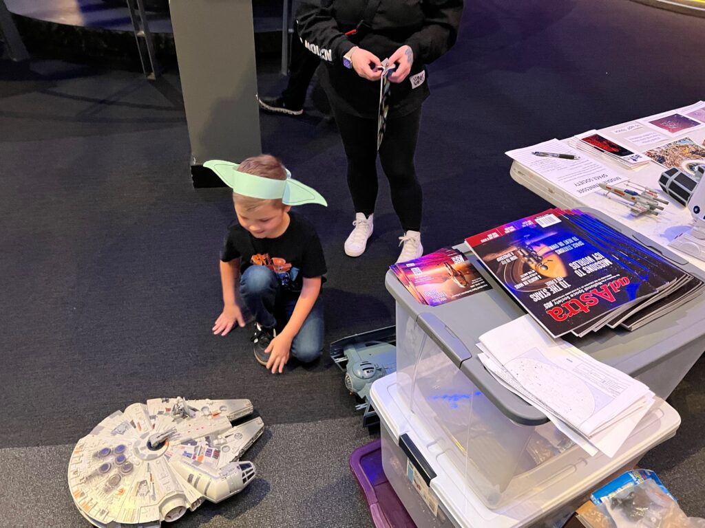 I had many adults thank me for explaining a lot of the space program spacecraft. I also had a lot of kids interested in all the rockets. And quite a few played with my Star Wars Millennium Falcon and Ty Fighter and my “planetary milk jugs” gravity demonstration.